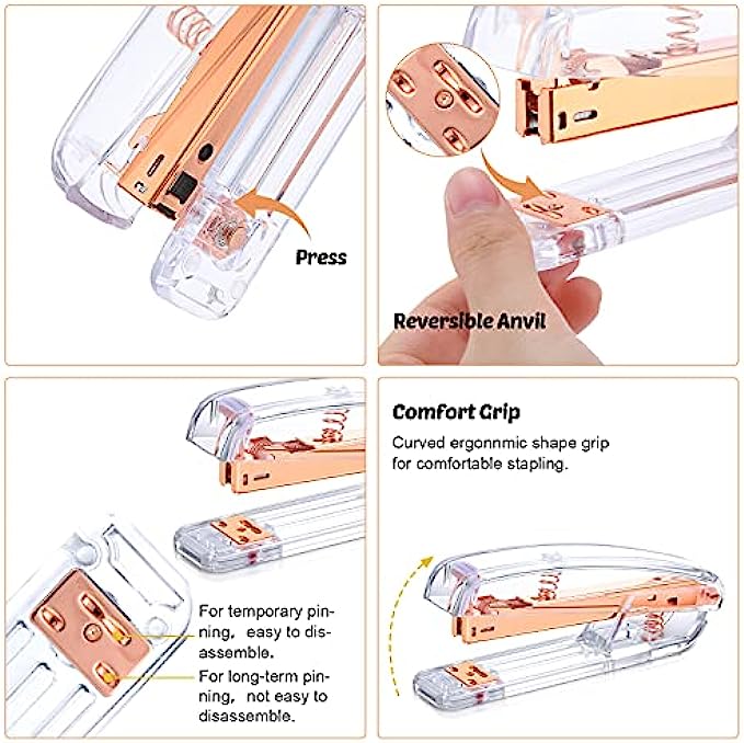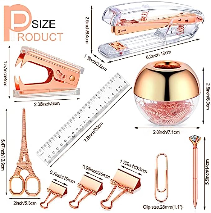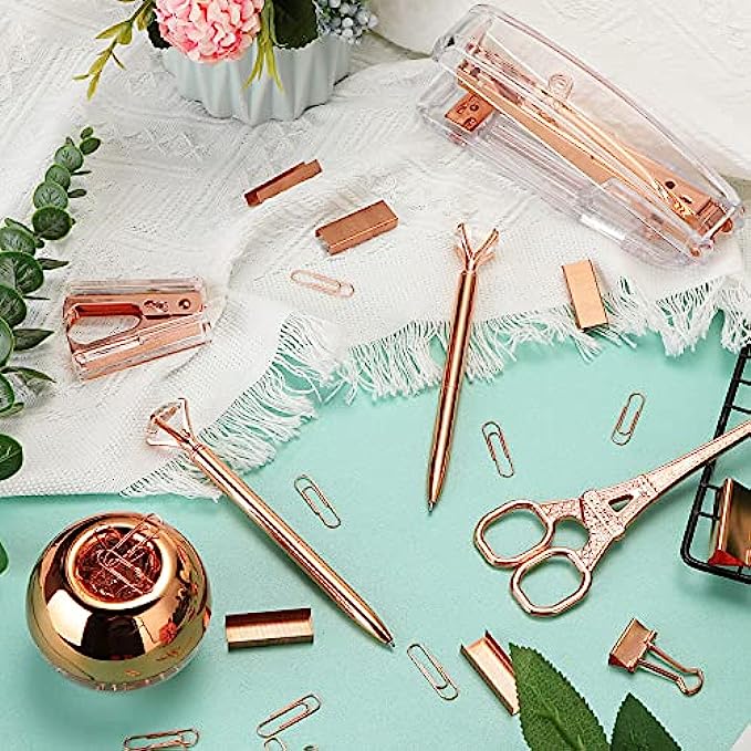 • Quantity material: the body of the clear rose gold stapler is made of ABS and stainless steel, which are sturdy and not easy to deform; The binder clips and diamond ballpoint pens are anti-rust and anti-impact, so they can serve you for a long time