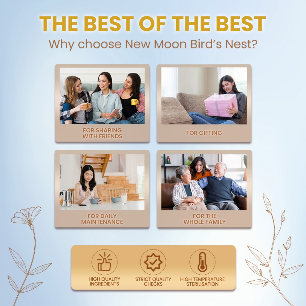 [2 Cartons Deal - Less Sweet] New Moon Bird's Nest with White Fungus Rock Sugar 150g x 15 bottles