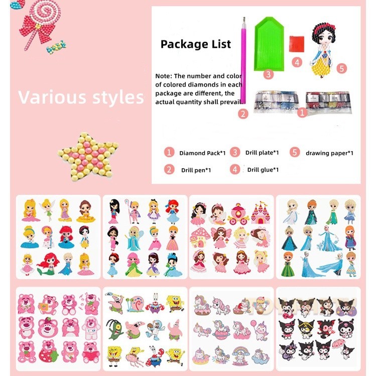 【⭐24H⭐Diy Sticker】5D DIY Diamond Sticker Kids Diamond Painting Cute Cartoon Kuromi Sanrio Melody Princess Art Craft Children'S Handmade Creative Girl Gifts Semi-Finished Drawing