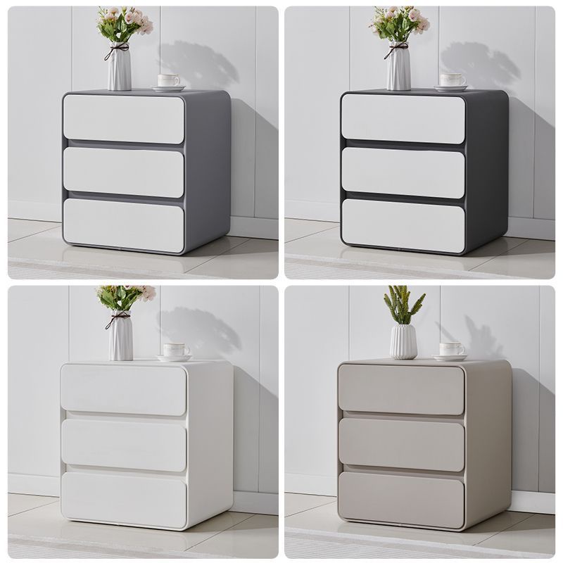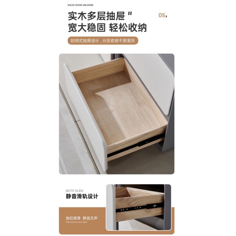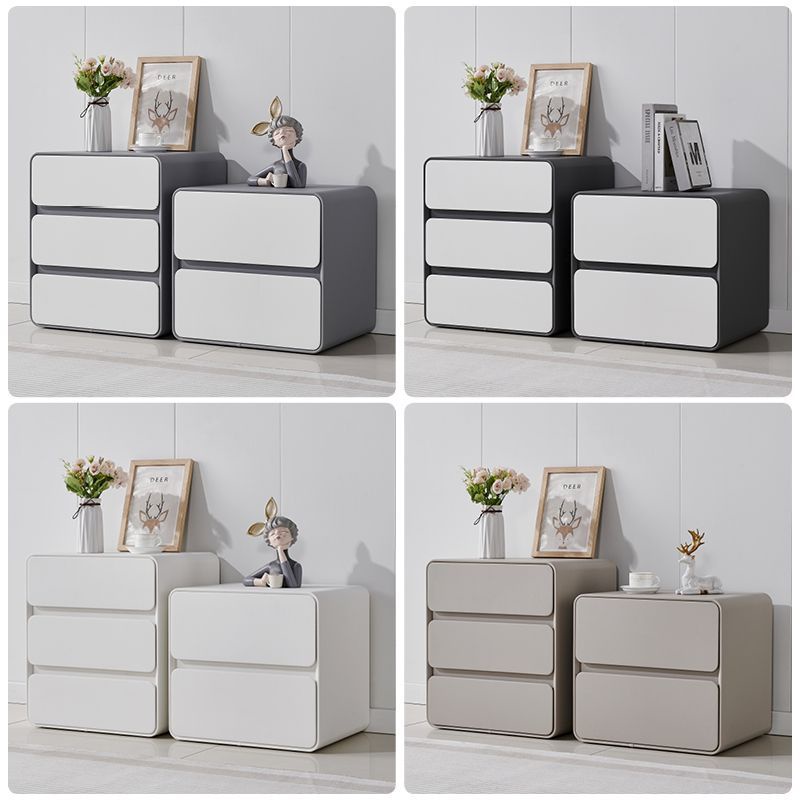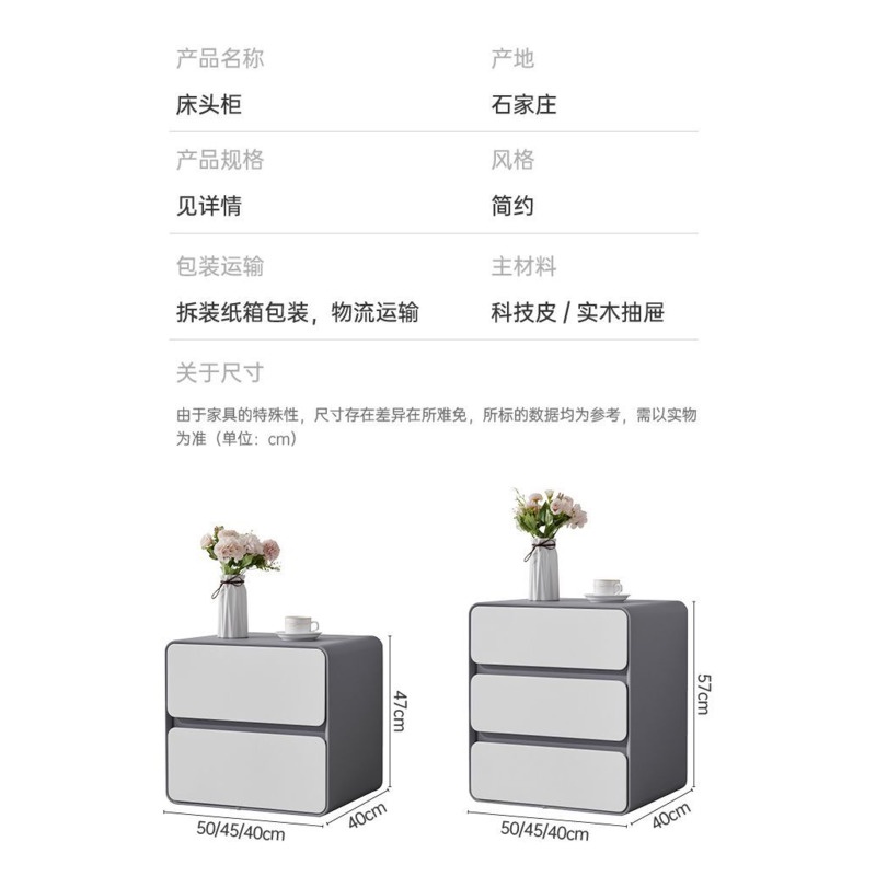 Bedside Table Minimalist Solid Wood Leather Sideboard Bedroom Three Layers No Installation Storage Cabinet (BI)