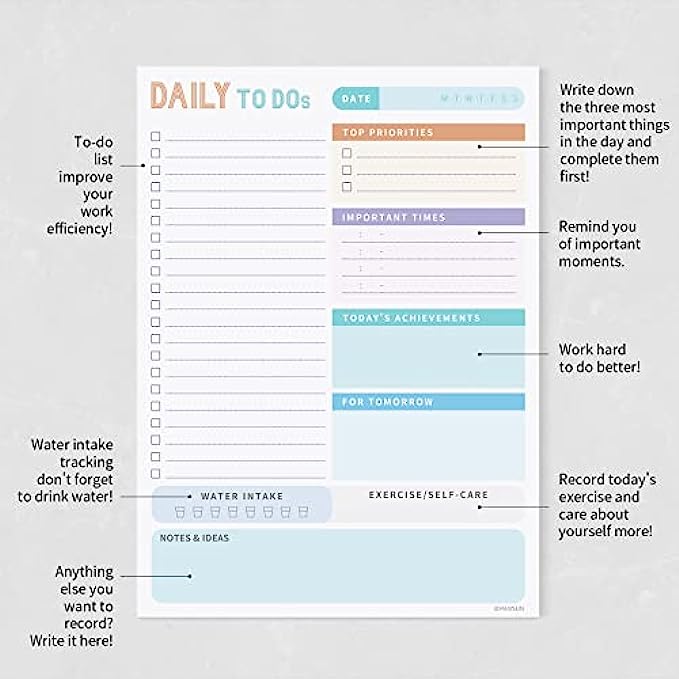 • Daily To Do List Notebook - Improve your work efficiency: record important things and to-dos so as not to omit them, tick them when you are done, if you can complete the tasks as planned, you will get a great sense of accomplishment at the end of the day.