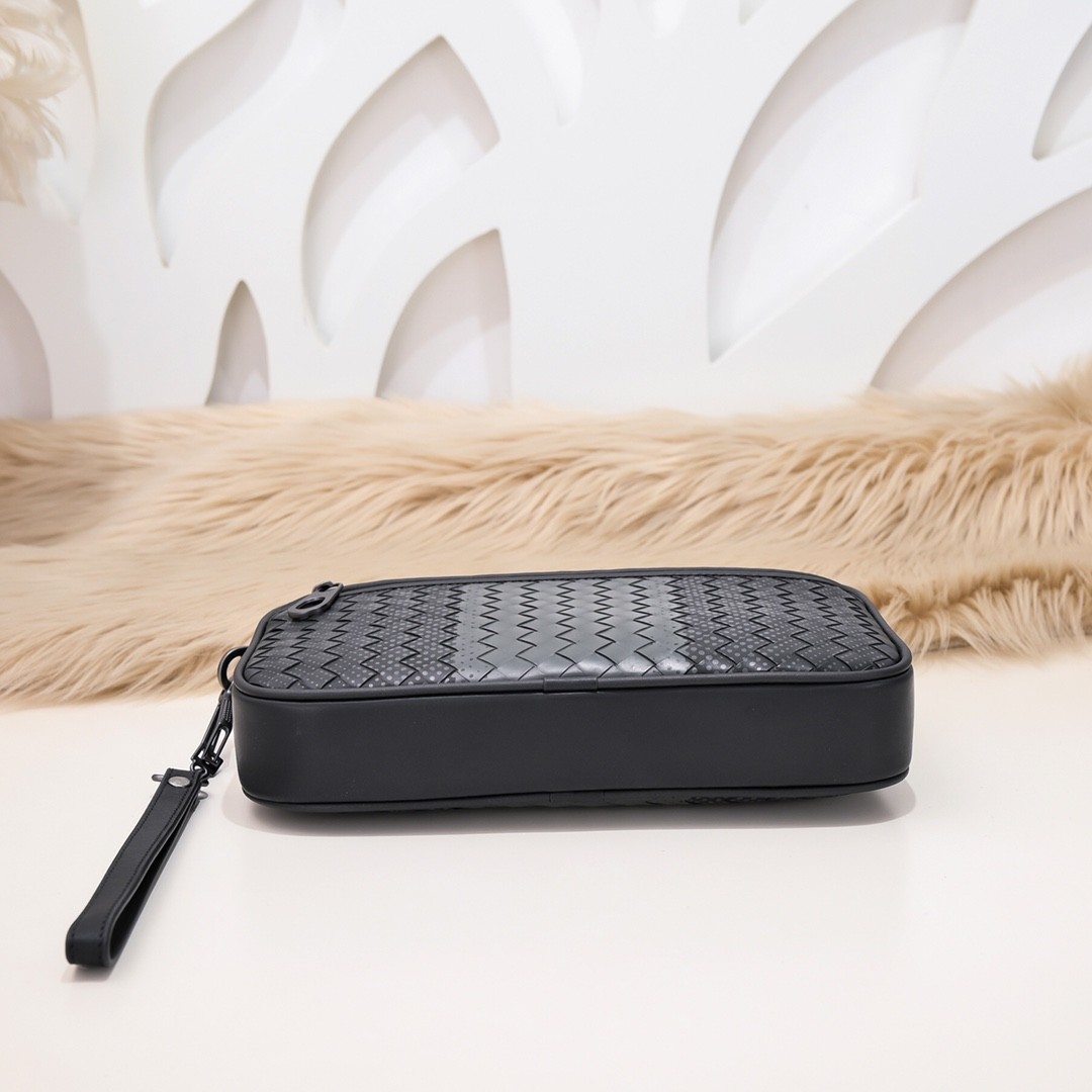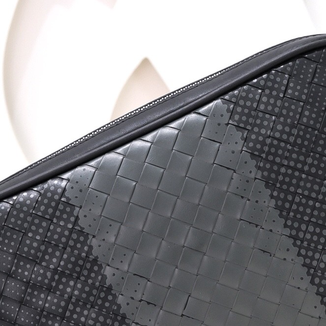 【BOTTEGA VENETA 寶緹嘉】Intrecciato 灰黑漸層手拿包|霧面拼色 × 編織皮革 × 義式極簡風