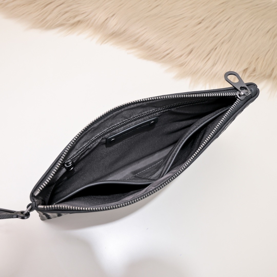 【BOTTEGA VENETA 寶緹嘉】Intrecciato 格紋刺繡手拿包|黑白交織 × 義式工藝 × 都會精品