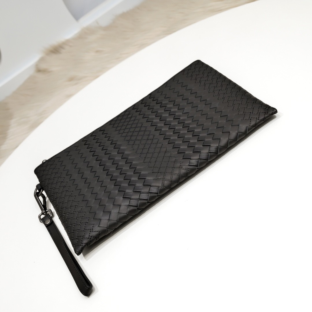 【BOTTEGA VENETA 寶緹嘉】Intrecciato 灰黑漸層手拿包|霧面拼色 × 編織皮革 × 義式極簡風