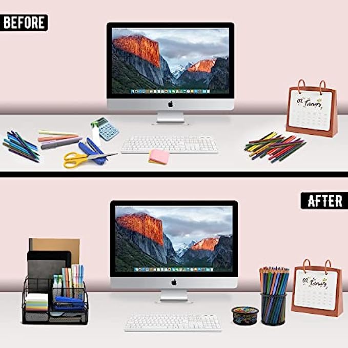 • Space Saving Option for Office/Art Supplies: Desk organizers have enough storage space to accommodate your desk supplies as files, books, mails, bills, documents, envelopes, folders, pens, pencils, markers, post-its, rulers, paper clips, binder clips, business cards, and more, also good for organizing makeups and small household items; keep it organized, easily find anything you need.