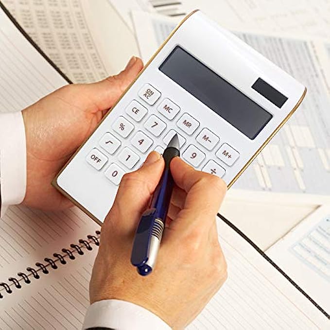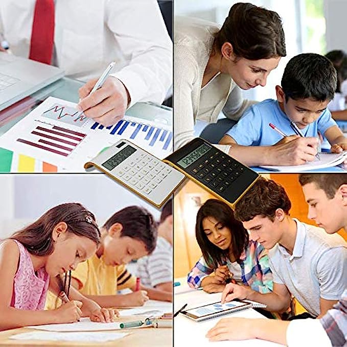 Calculator, 10 Digits Solar Battery Basic, Dual Powered Desktop Calculator, Tilted LCD Display, Inclined Design Slim Desk Calculator by Sportsvoutdoors (White)