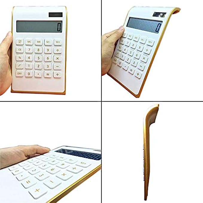 Calculator, 10 Digits Solar Battery Basic, Dual Powered Desktop Calculator, Tilted LCD Display, Inclined Design Slim Desk Calculator by Sportsvoutdoors (White)
