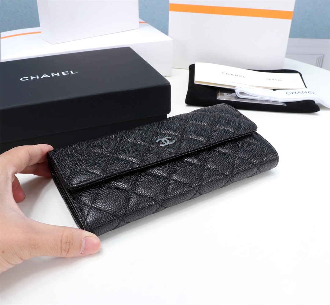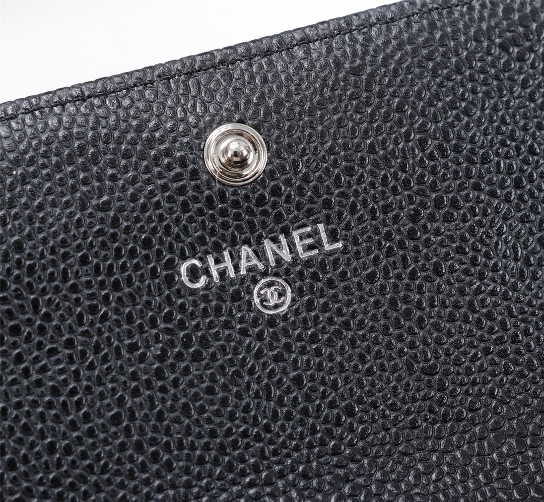 Chanel經典黑色魚子醬皮革長夾