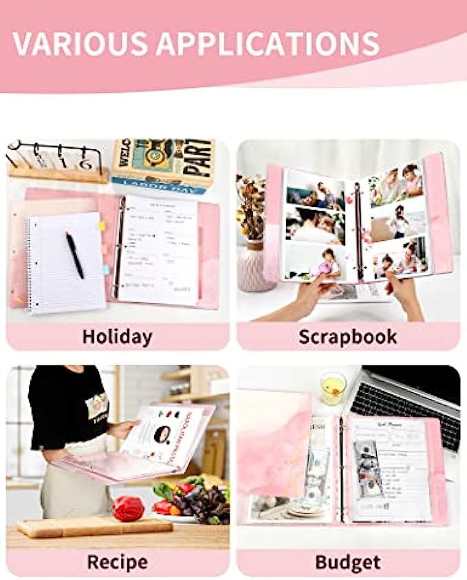 VARIOUS APPLICATIONS: Our large binder can be DIY as school binder, office binder, recipe binder, photocard binder, holiday planner binder, budget binder, business binder, playbill binder and more. Whatever you want to use it for. The 3 ring binder dividers with tabs can be given as a exquisite gift to your friends, families and lovers on Christmas, Thanksgiving, Birthdays and so on. If you are a handbook lover, then having a beautiful binder will be your best choice!