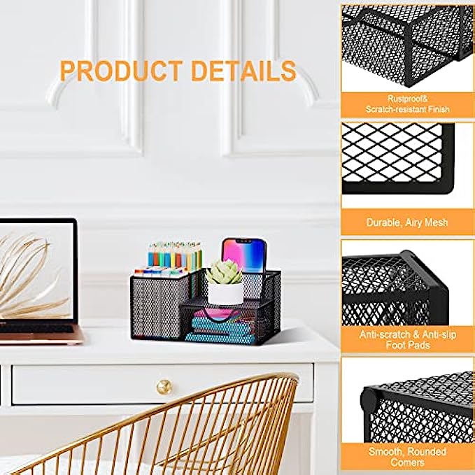 • DURABLE MATERIAL: office supplies organizer is made of sturdy mesh metal with a smooth durable rust-resistant ABS coating, and smooth rounded edges will ensure the organizer is safe to use for everyone