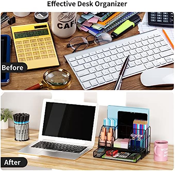 • 【Unique And Stylish】: Desk organization use black metal finish design, simple and stylish, easily match other office accessories and surrounding decorations.It is suitable for home, office, classroom, etc; Nice on desktop, living room, bedroom dresser, coffee table, shelf, etc.