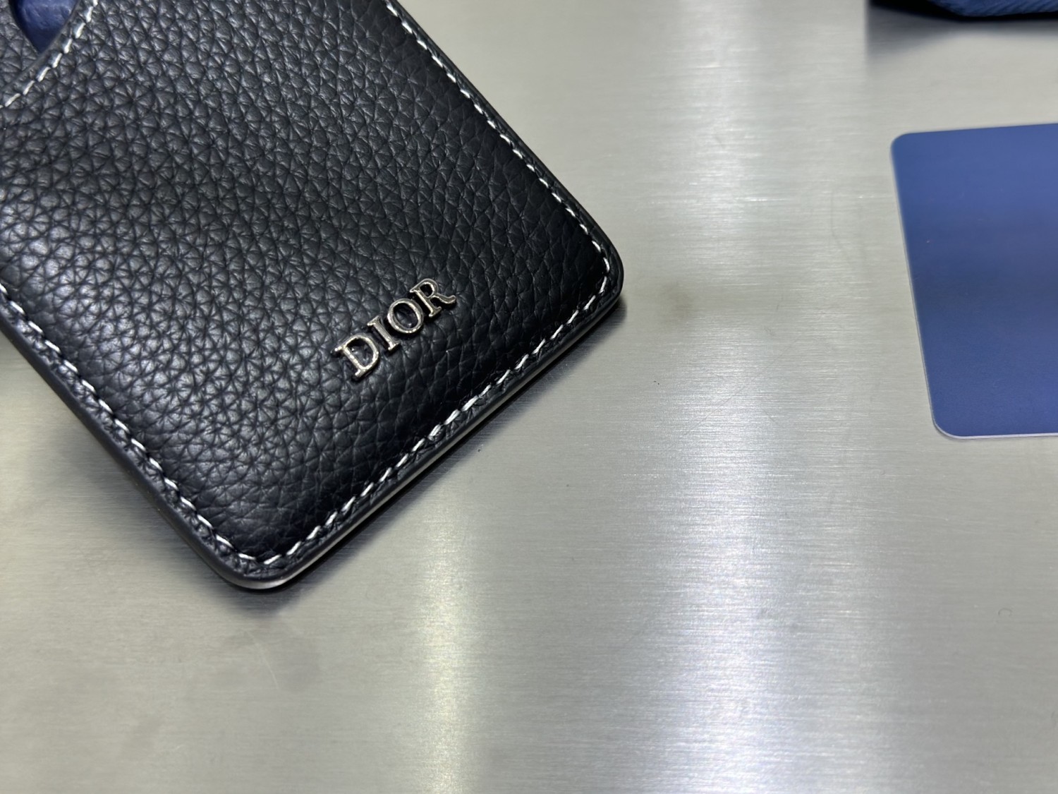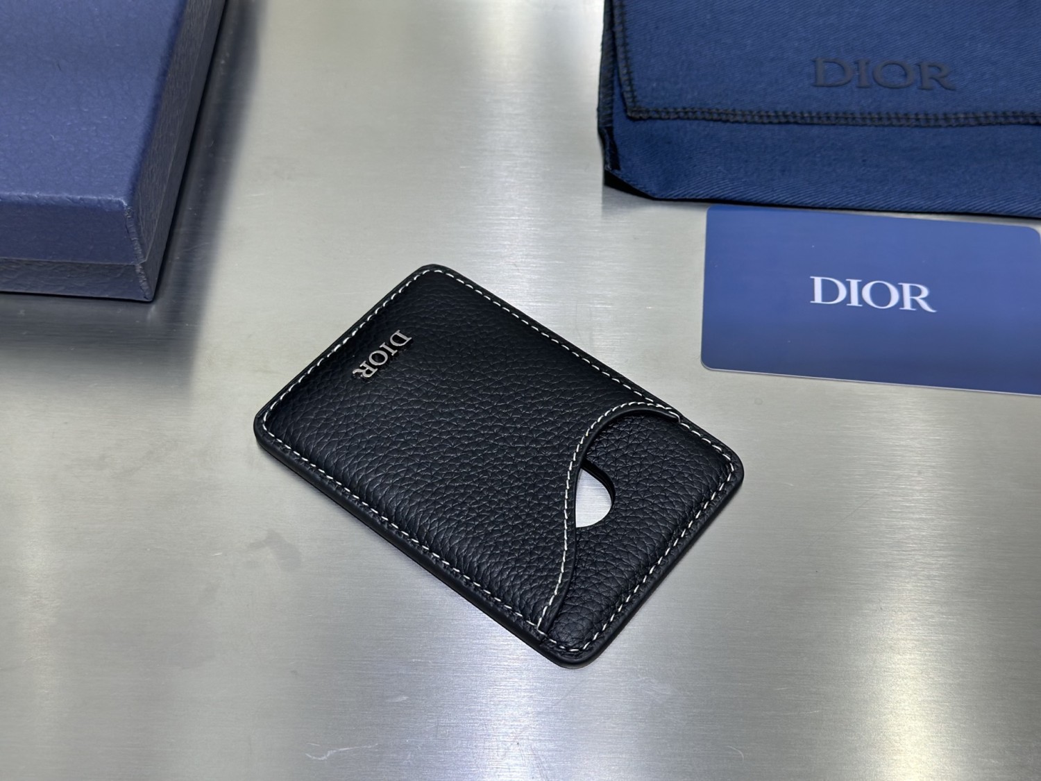 【Dior 迪奧】經典黑色皮革卡夾|黑色小牛皮,白色縫線,簡約Dior字母Logo