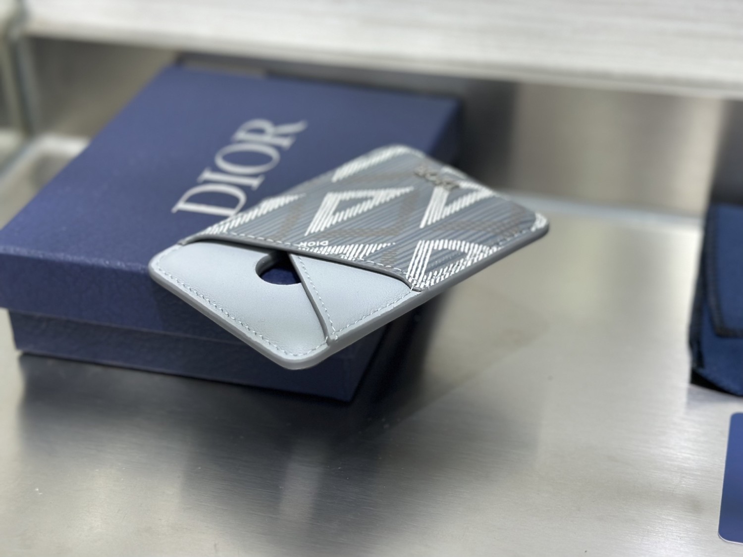 【Dior 迪奧】Oblique 卡夾(灰銀款)|灰色小牛皮,幾何印花,Dior字母Logo