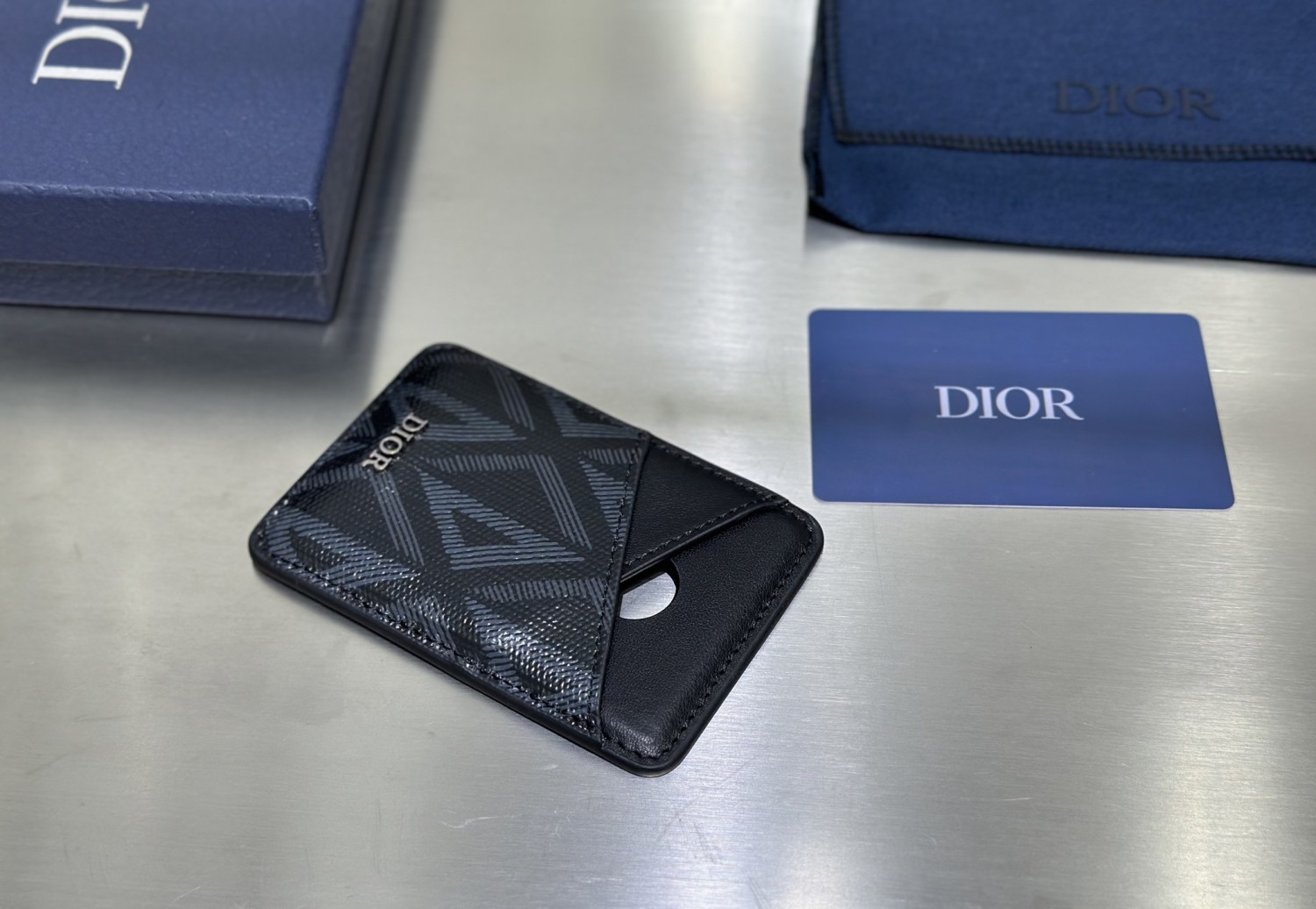 【Dior 迪奧】Oblique 卡夾(藍黑款)|藍黑Oblique圖案,黑色小牛皮,Dior字母Logo,經典與現代風格結合