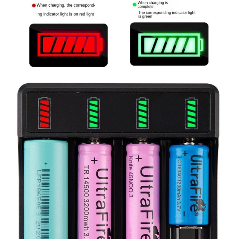 Fast Charger with Type C cable 4.2V Lithium Battery 4 Slot Strong Light Flashlight Intelligent Charge for 14500 26650 18650