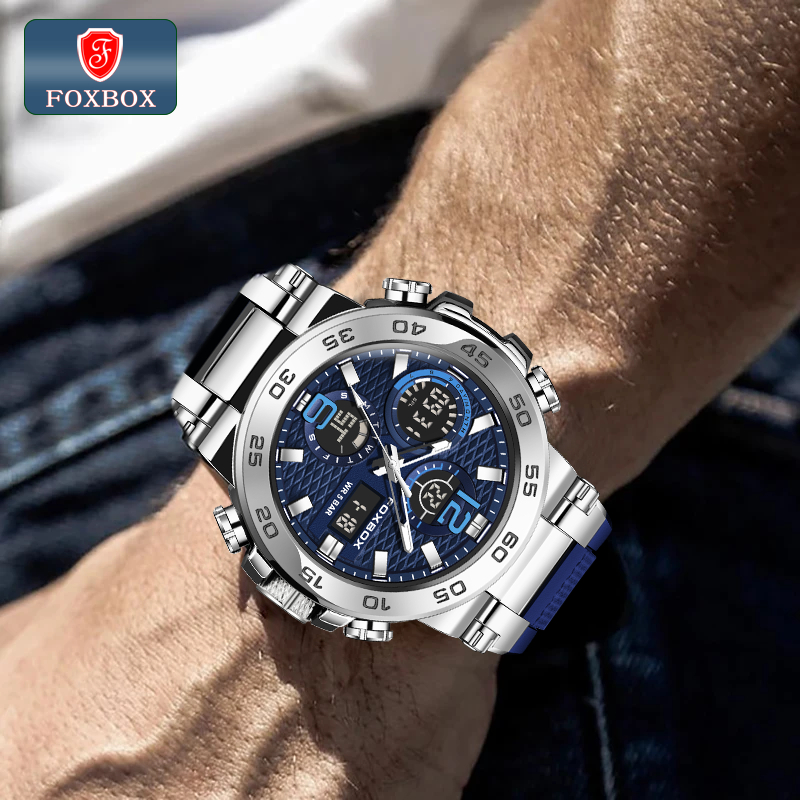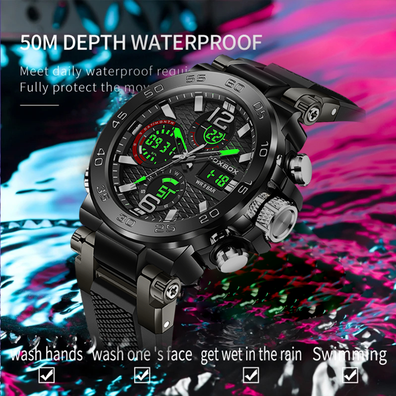 FOXBOX Watch original For Men LED Waterproof Sport Electronic Luminous Quartz Silicone Wristwatch Date Alarm LIGE Men Watches