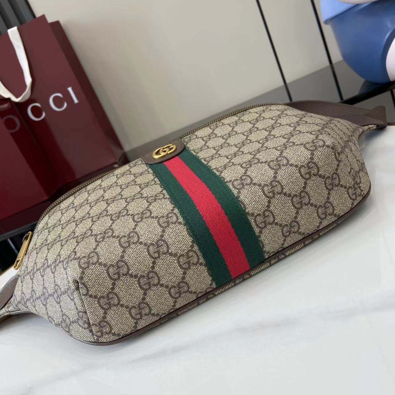 【GUCCI 古馳】Ophidia 經典雙G帆布腰包|紅綠織帶 × 復古金扣 × 都會休閒風