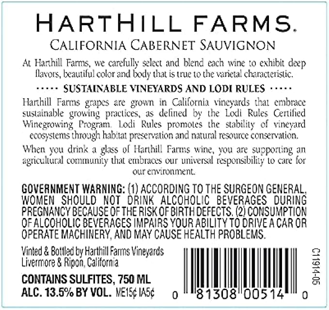• Harthill Farms grapes are grown in California vineyards that embrace sustainable growing practices as defined by the Lodi Rules Certified Winegrowing Program.
