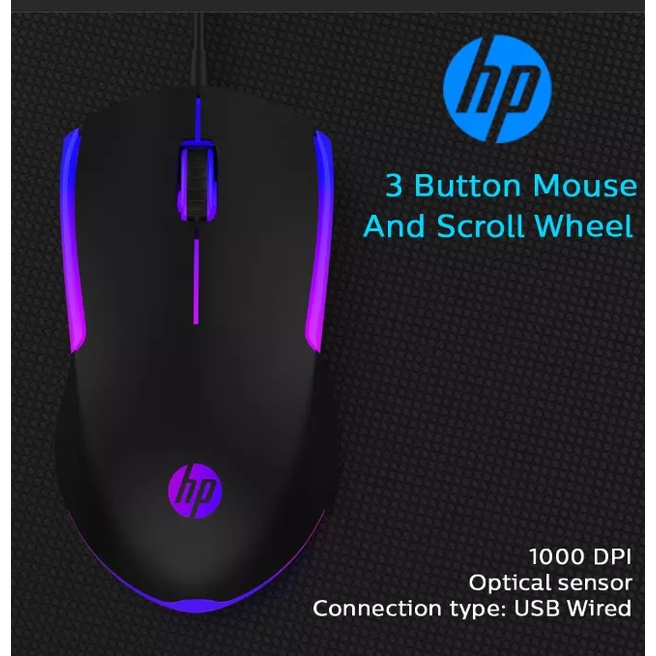 HP M160 Wired Gaming Mouse, 1000 DPI, High Performance Optical Tracking Gaming Mouse, with 7 Colours Rainbow LED, PC
