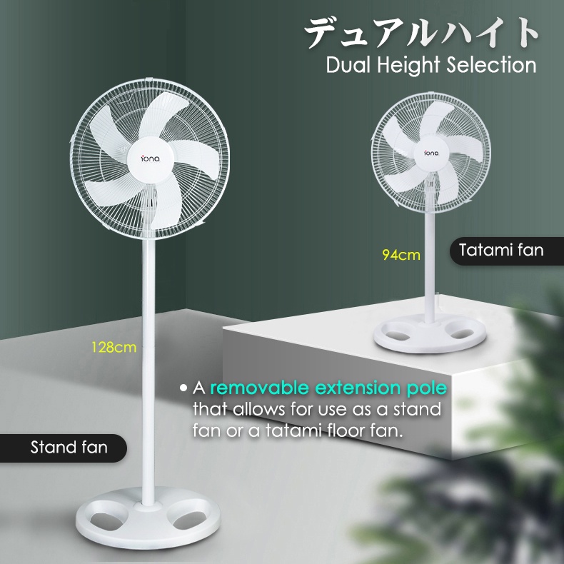 IONA 16" 5 Blade Black White Adjustable Stand Standing Fan | Electric Tatami Fan 家用风扇 風扇 - GLSF166