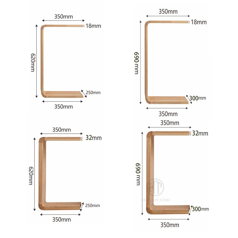 KT-zone Side Table Solid Wood U-shaped Bedside Table C- Shaped Tatami Storage Rack Small-sized Corner Creative Bedside Sofa Side Living Room Tea Table