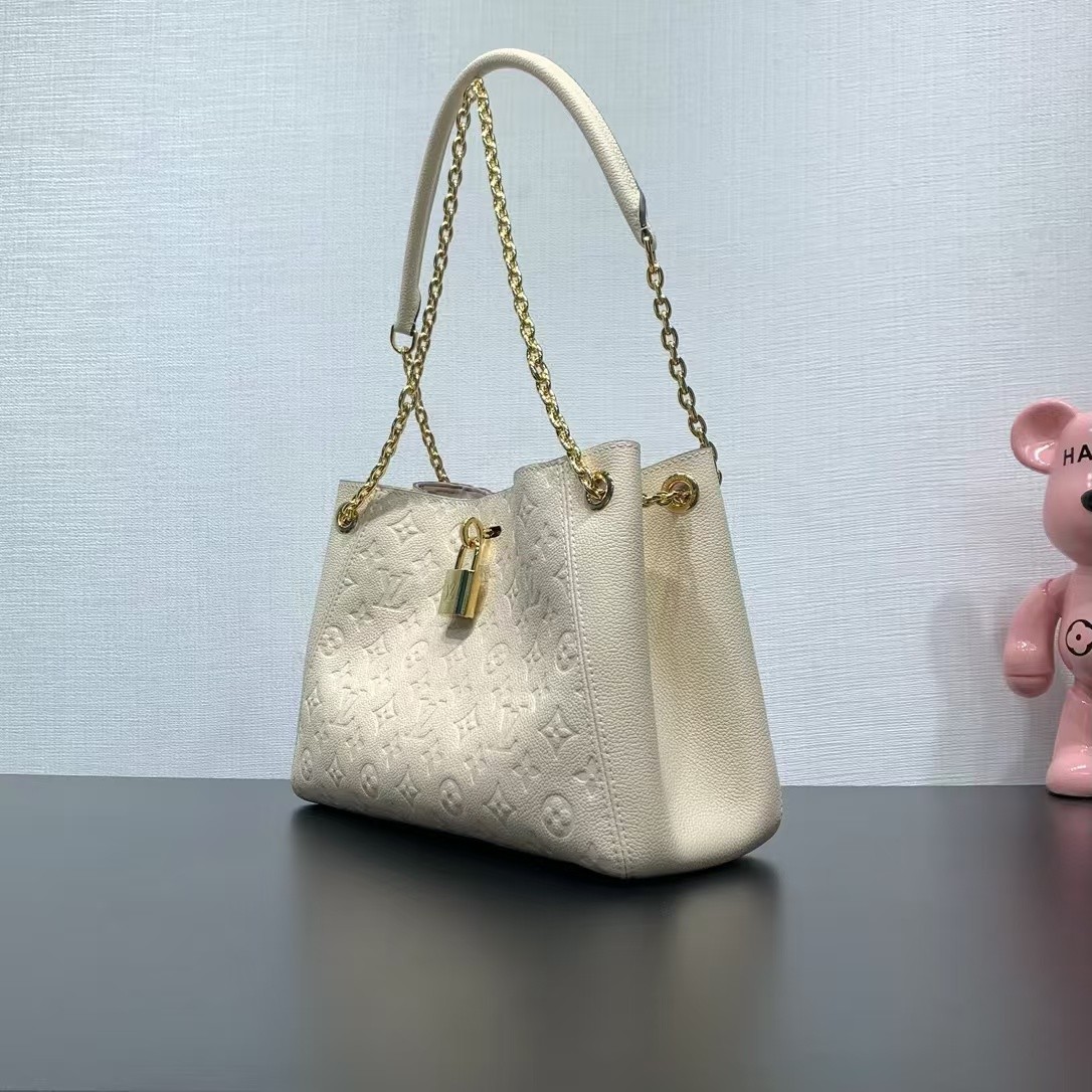 【Louis Vuitton】LockMe Ever 輕奢托特包|柔霧奶油米 × 壓印 Monogram × 金鍊肩背設計