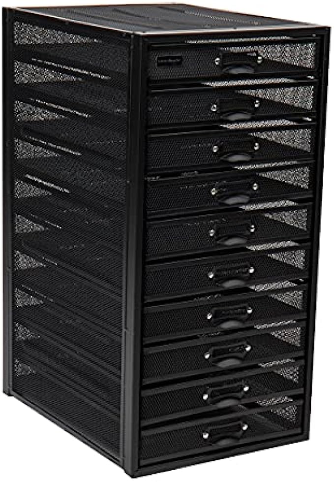 Mind Reader Mesh Desk Organizer, Office Supply Storage, Vertical Jewelry Box with Drawers, 10 Compartments, Reinforced Wire, Black