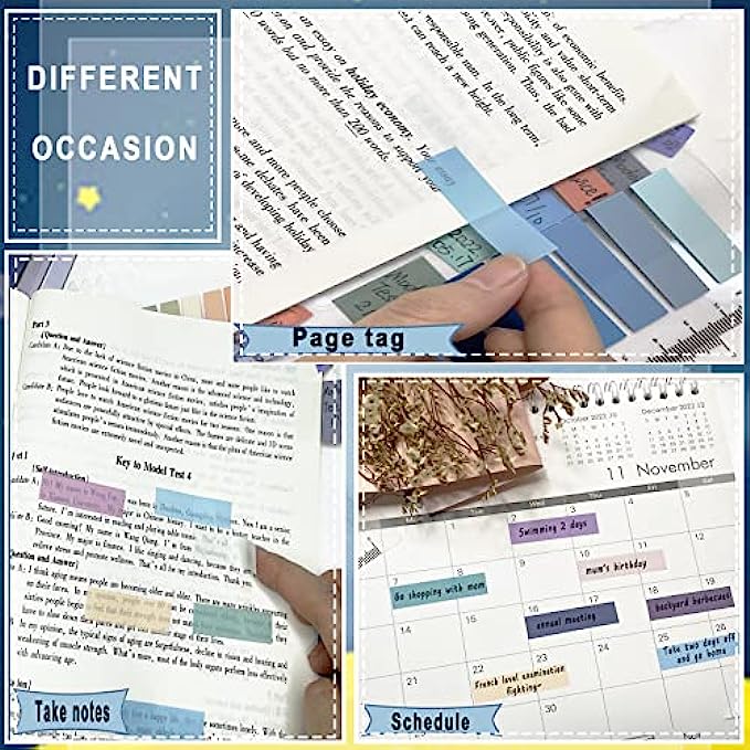 • TRANSLUCENT & WATERPROOF:Index tabs are made of PET, translucent and waterproof. Transparent degin to meet the need for note-taking and help you easily annotate on the page without obscuring the important message.