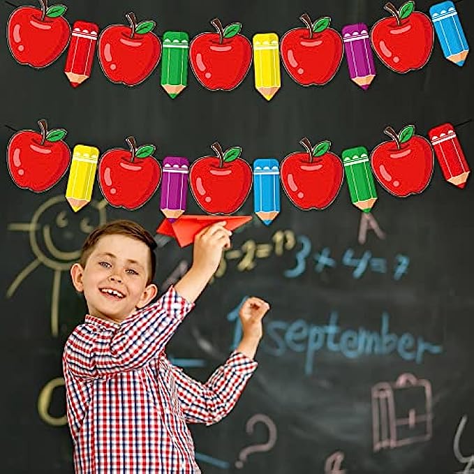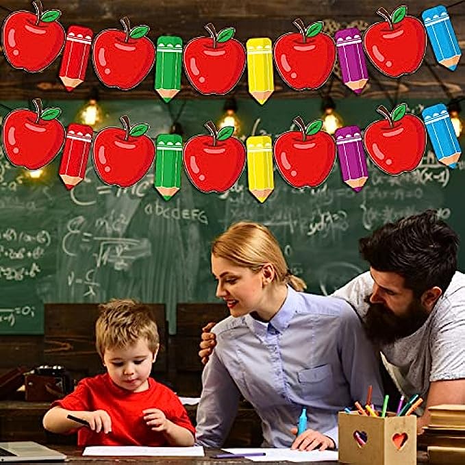 • ?The Pencil and Apple Banner is perfect for students back to school party decorations, first day of school first day of kindergarten party decorations, school classroom welcome back party decor, or classroom, daycare, office, elementary, high middle school, university, college, kindergarten graduation decorations.