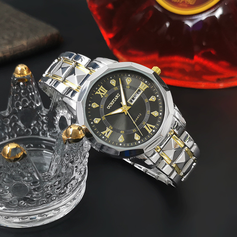 POSHI Waterproof Mens Watches Quartz Business Stainless Steel Silver Metal Multifunction Calendar Luminous Casual Men Watch
