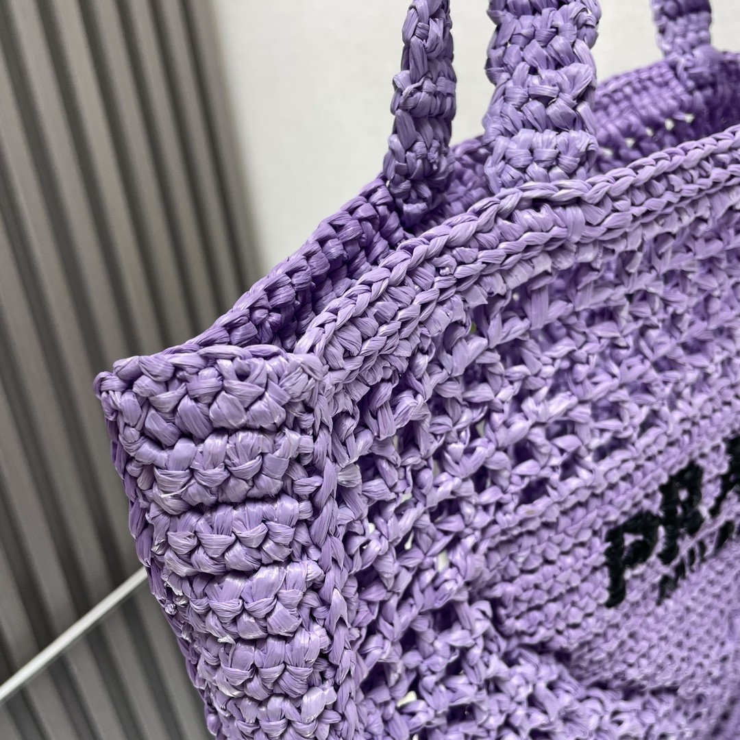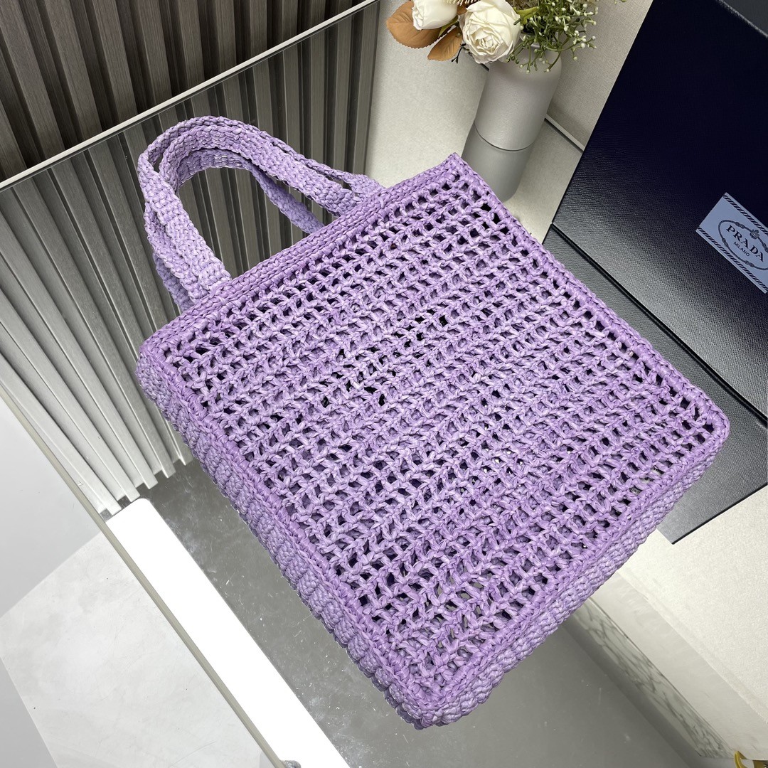 【PRADA 普拉達】Raffia 編織托特包|薰衣草紫 × 手工鏤空 × 夏日夢幻限定