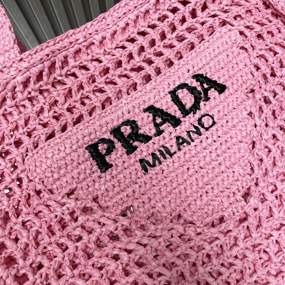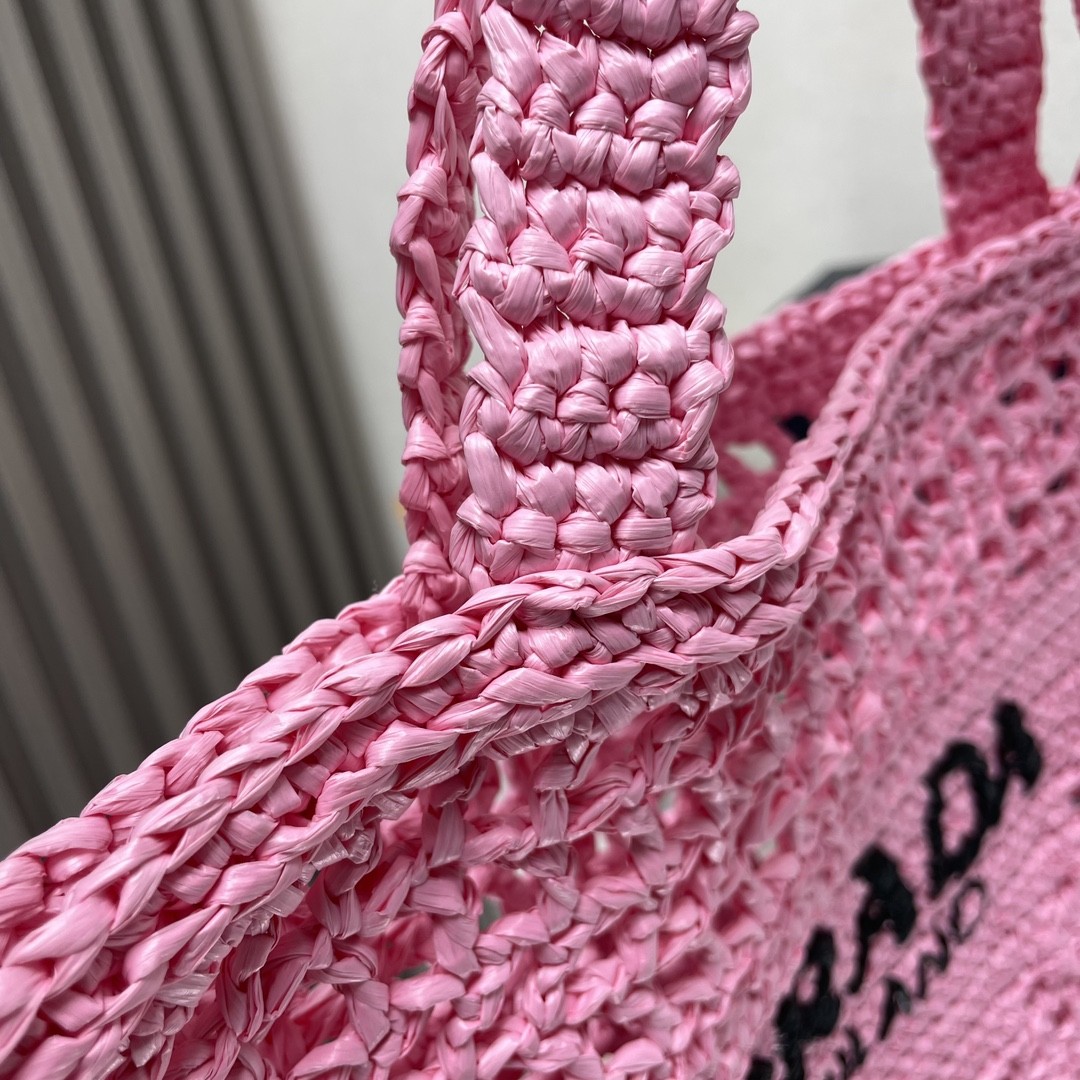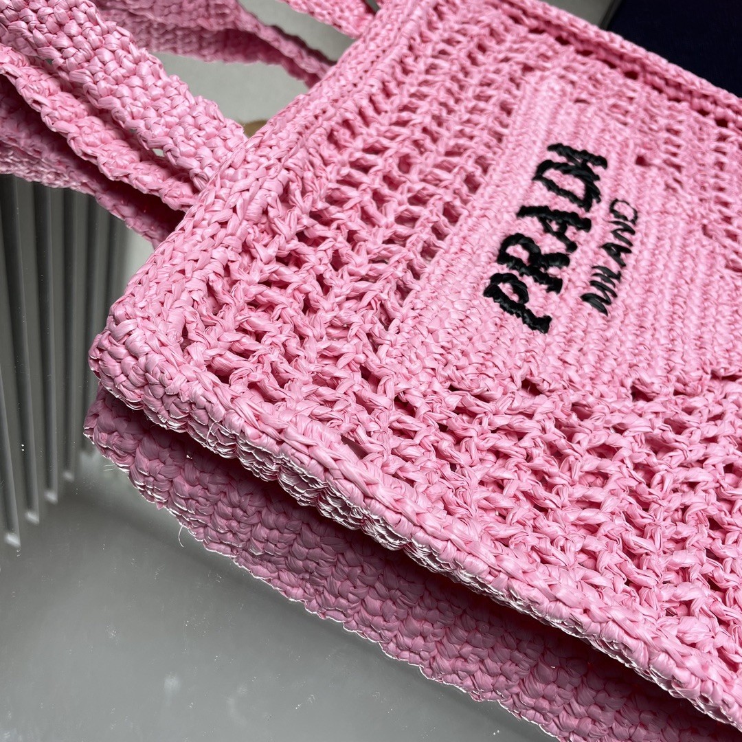 【PRADA 普拉達】Raffia 編織托特包|甜粉色 × 手工鏤空 × 夏日限定