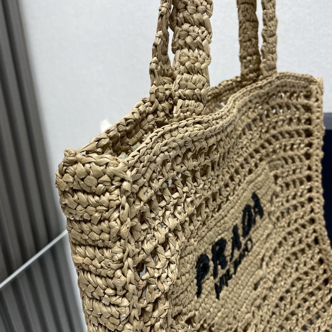 【PRADA 普拉達】Raffia 編織托特包|手工藤編 × 三角Logo × 度假海島風