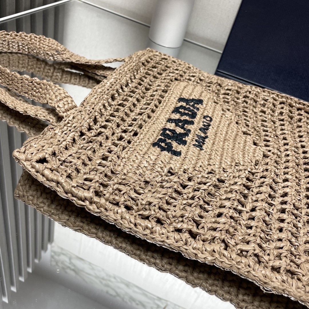 【PRADA 普拉達】Raffia 編織托特包|煙燻棕 × 手工鏤空 × 海島度假風