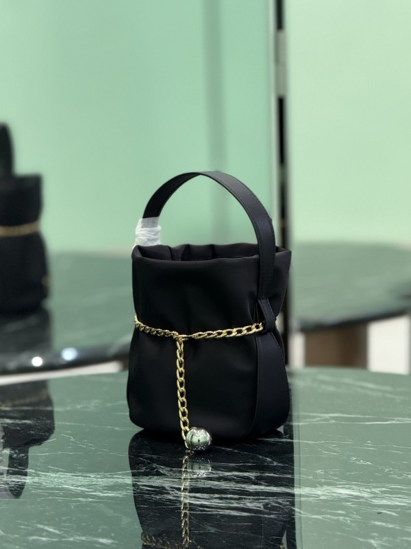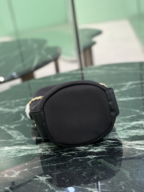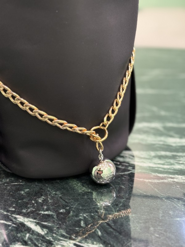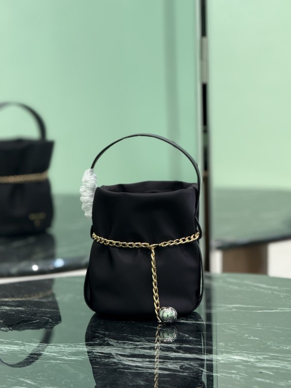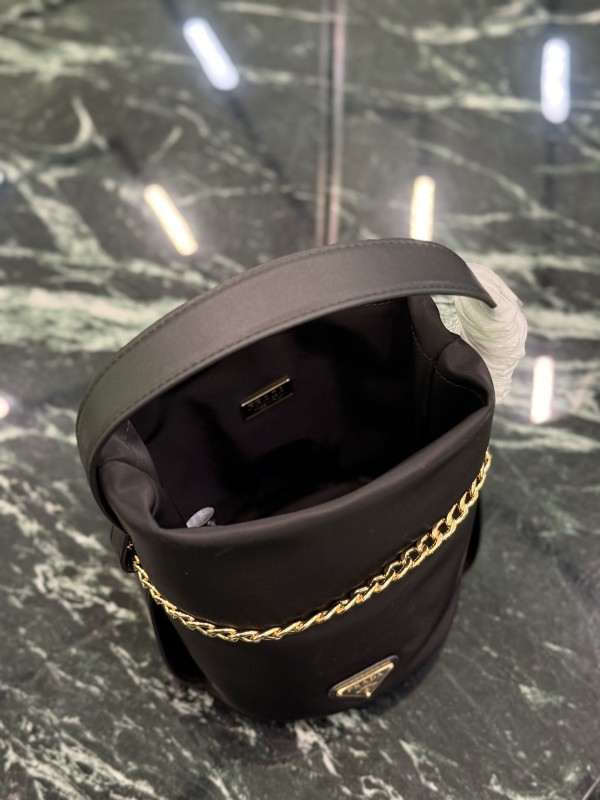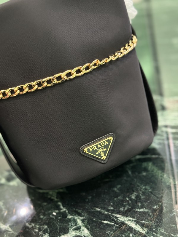 【PRADA 普拉達】Re-Nylon 鍊條水桶包|金鍊裝飾 × 三角Logo × 都會簡約黑色
