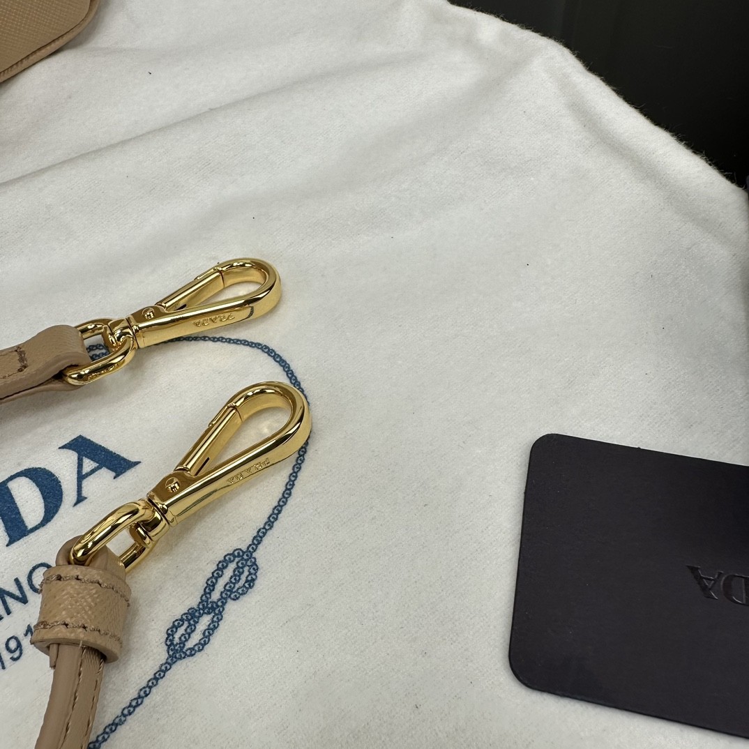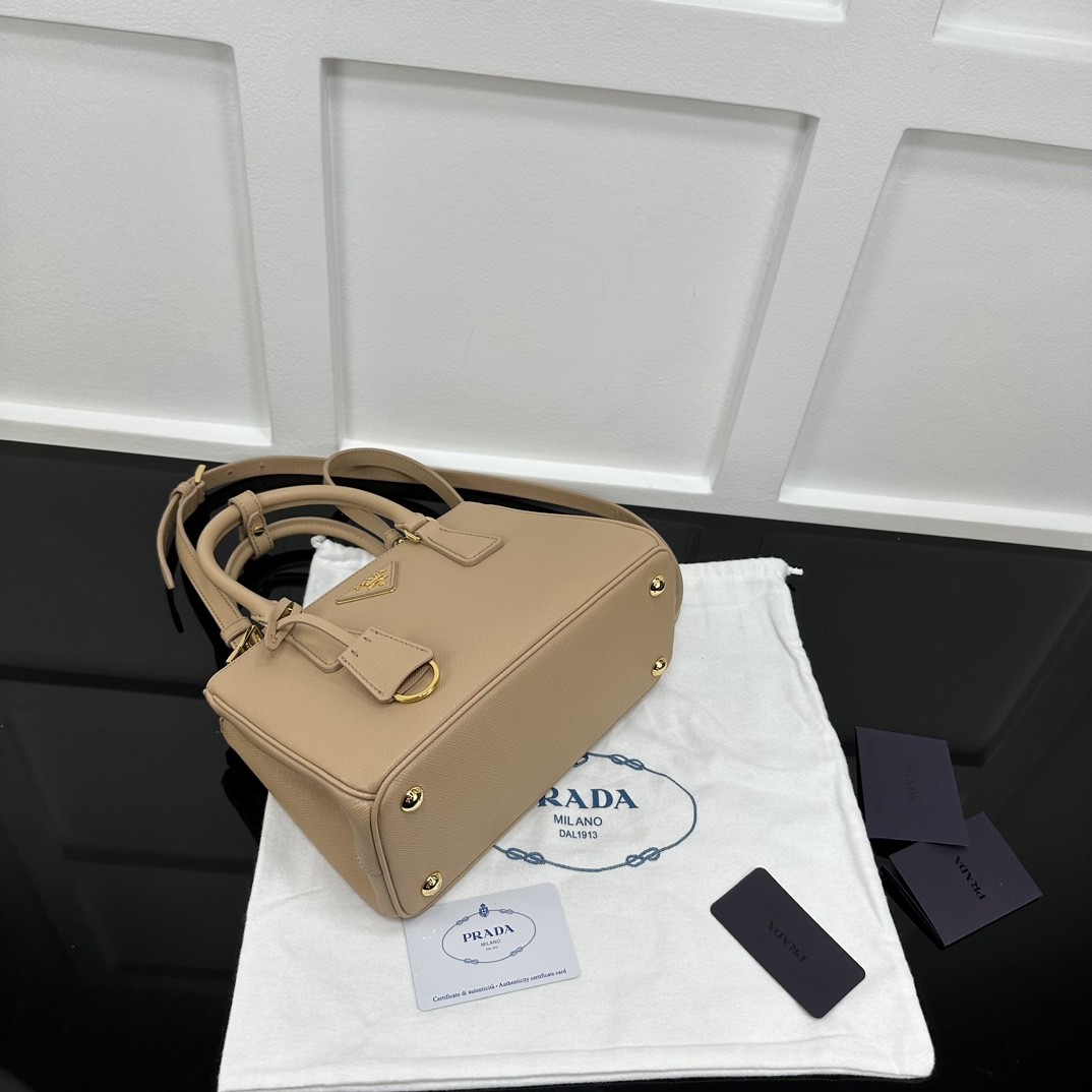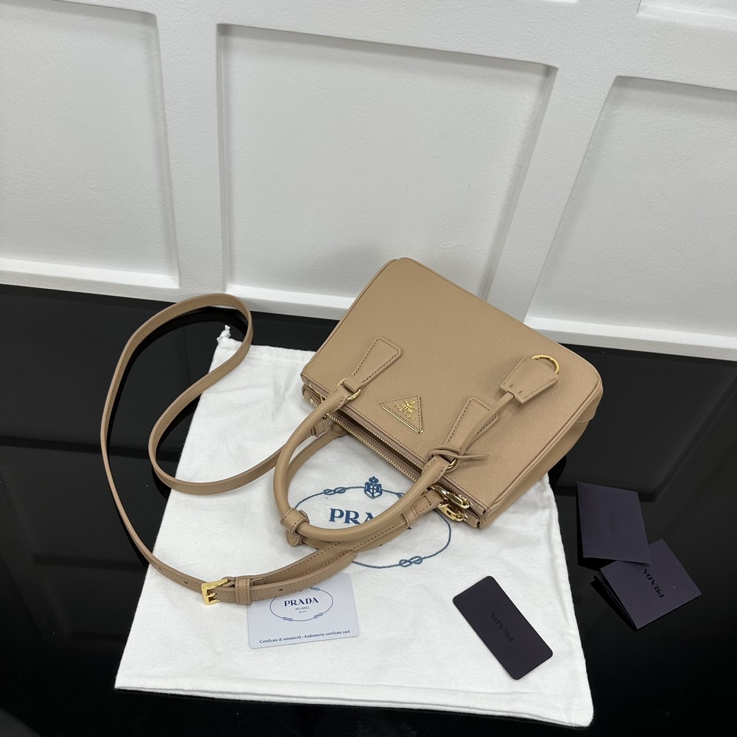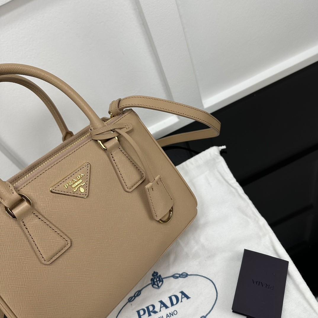 【PRADA】Galleria Small Saffiano 手提包|奶茶米 × 金扣 × 雙層拉鍊