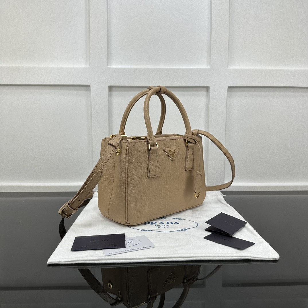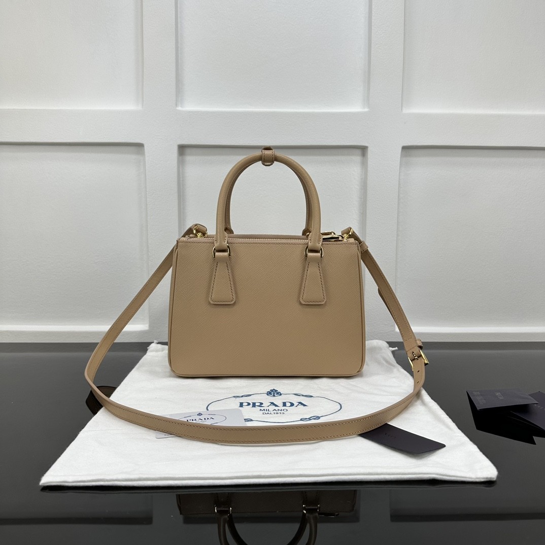 【PRADA】Galleria Mini Saffiano 手提包|焦糖棕 × 金扣 × 雙層拉鍊