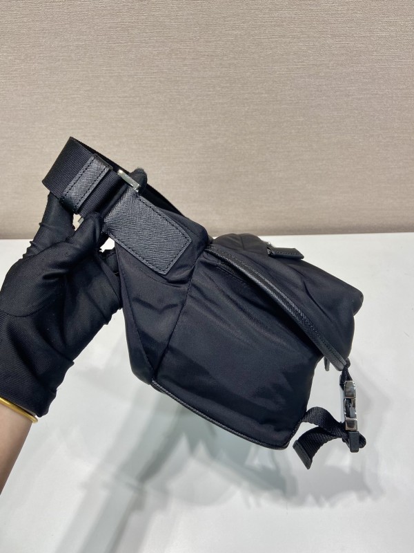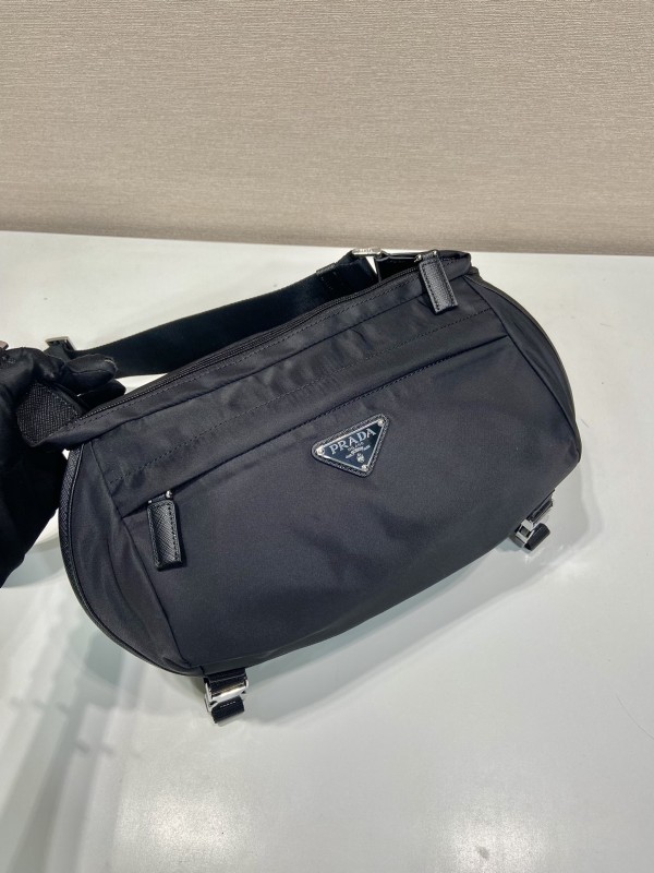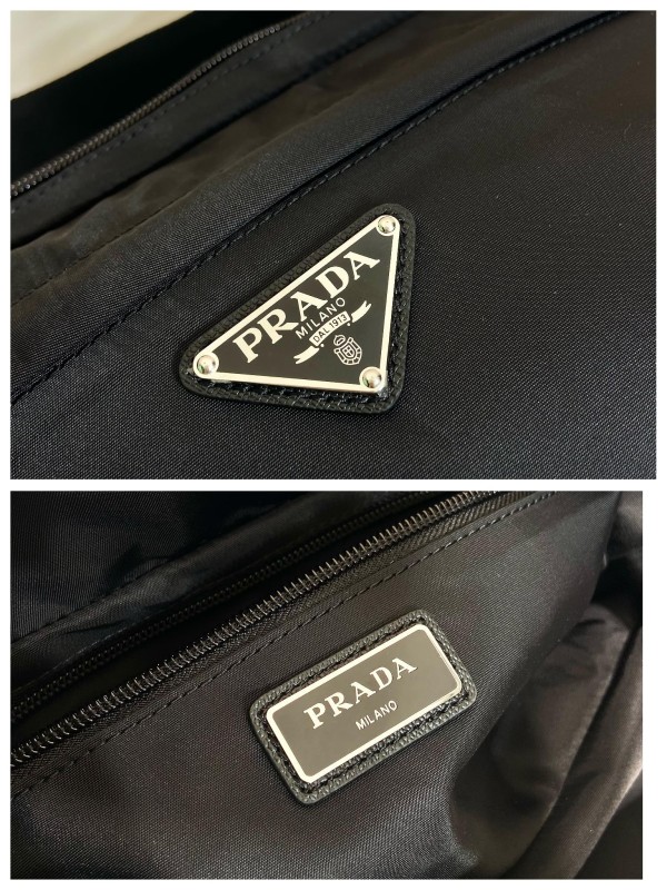 【PRADA】Re-Nylon 黑色三角Logo斜背包|雙層拉鍊設計 × 寬版肩帶 × 都會機能風