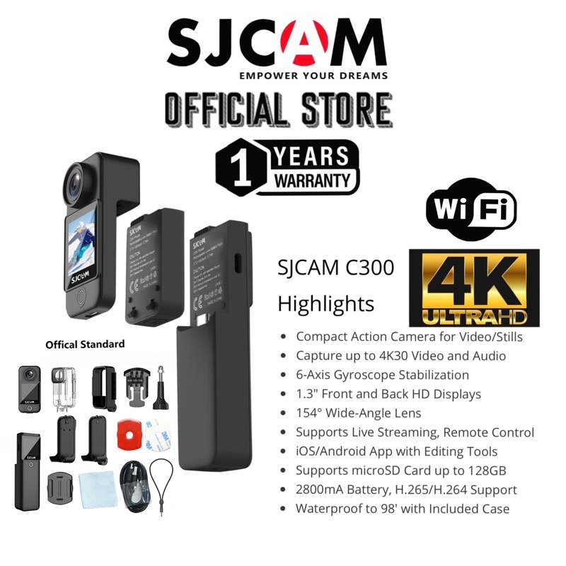 SJCAM C300 Vlog Action Camera 4K/30FPS Dual Screen 5G/2.4G WiFi Sports Camera Waterproof Vlog Camera Digital Camera Motorcycle Camera