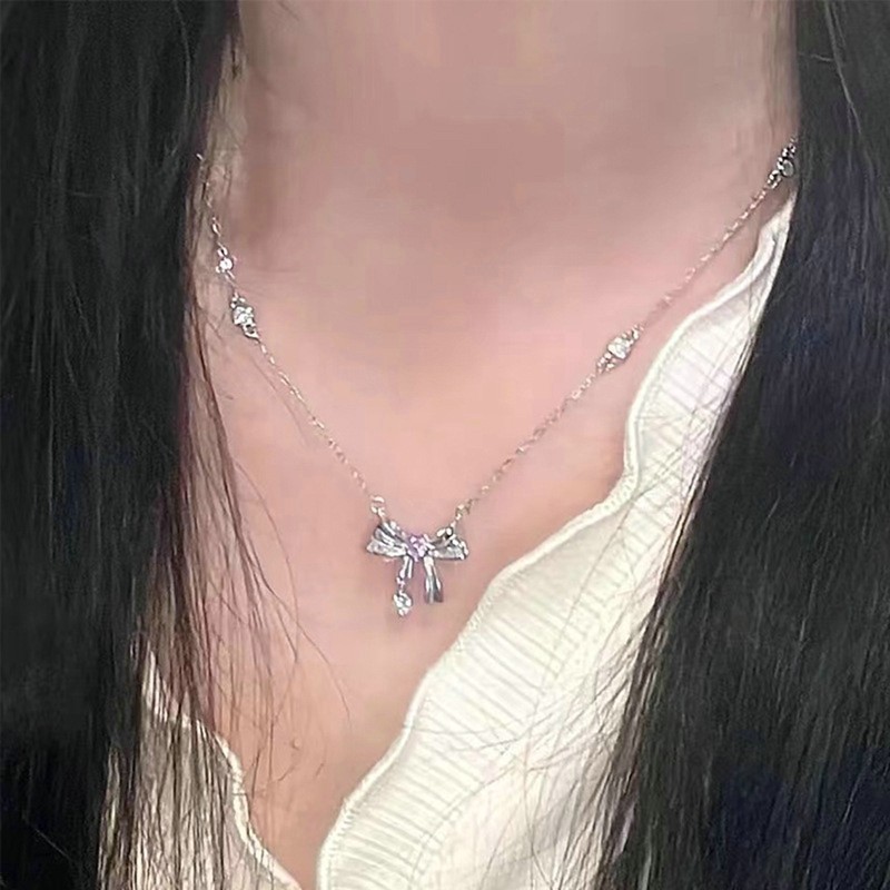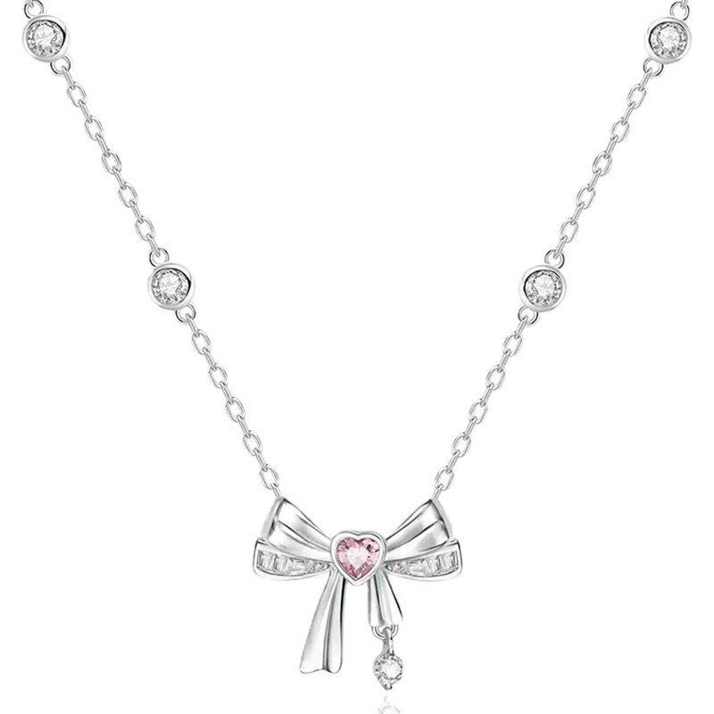 Sweetheart Pendant Necklace With Pink Diamond Butterfly Bow Necklace Chic And Unique Pendant Necklace