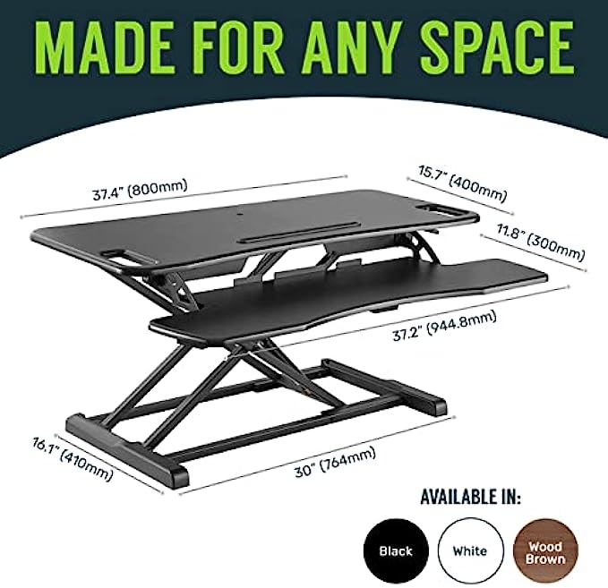 • LARGE - At 37" wide, our stand up desk riser in white has room for your computer or laptop, dual monitor display, keyboard, mouse, speakers, and other office supplies.