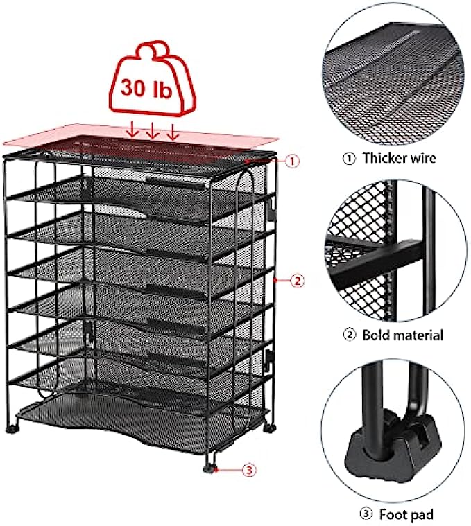 • Solid Structure - the letter tray holder is made of 0.15”(3.8mm) steel wire mesh and solid thick frame. The welding is very firm, and the rubber anti slip foot pad is added to prevent sliding and avoid surface scratches. It is solid and durable.
