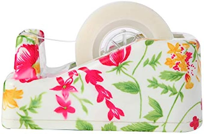 VIBRANZ-LAB Cute Tape Dispenser Desk Home Office Desk Supplies Fun Desk Accessories Floral Office Tape Dispensers Cute Office Supplies for Women Desk Weighted Non-Skid Non-Slip Base