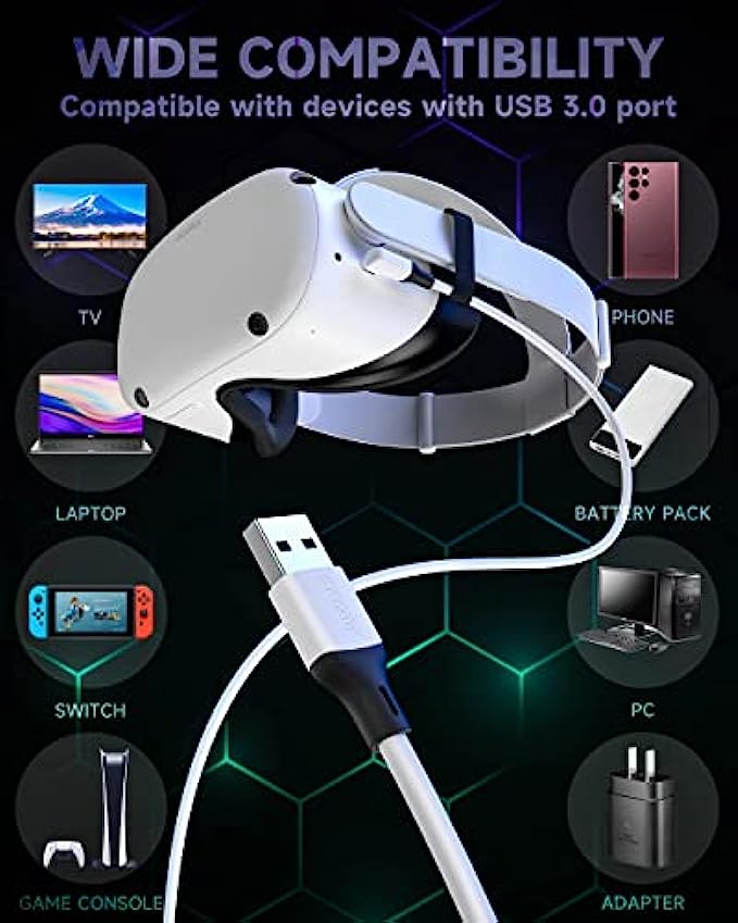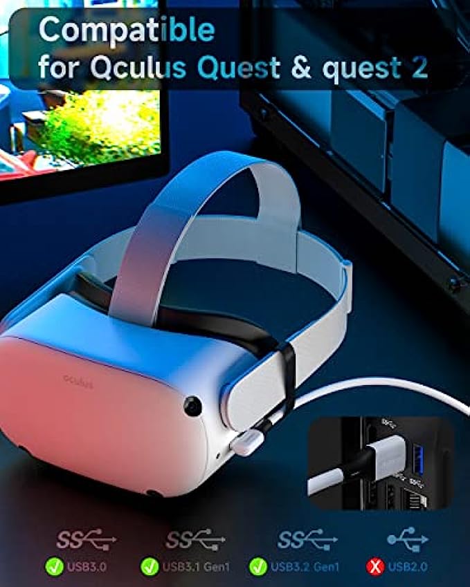 ➤Design for Oculus Quest 2 : ZOOAUX link cable Compatible with Meta/Oculus Quest 2 Accessories, it can perfectly connects the Quest / Quest 2 to the gaming PC, so that you can play all Oculus Rift apps and Steam VR games, while simultaneously powering the headset. You can enjoy the vast and growing selection of PC VR games.