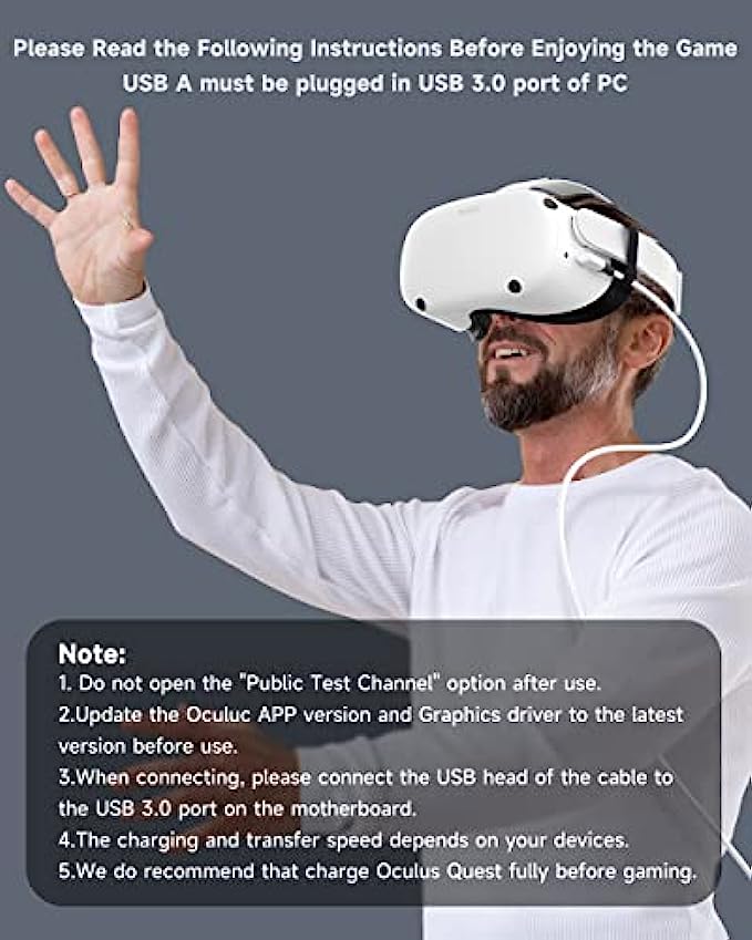 ➤ High-Speed Transfer & Safe Charging : The USB 3.2 Gen 1 A to C link cable supports 5 Gbps data transfer, which means users won’t struggle with any lag when playing tethered VR titles, bringing you a more smooth gaming experience. Also, the USB C cable support 3A power output, letting the headset be charged while playing. Note: When connecting to your computer, please insert it into the USB A 3.1/ USB A 3.0 port.