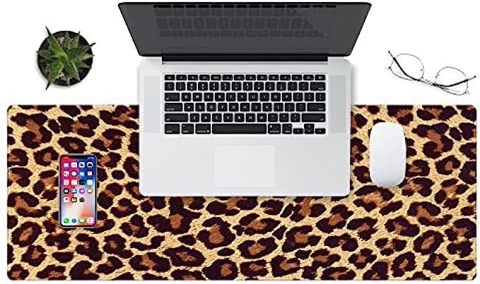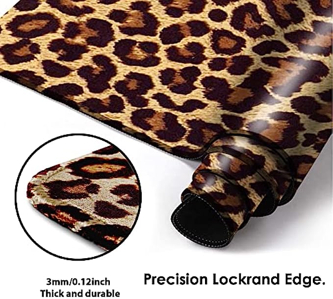 ZYCCW Large Gaming XXL Mouse Pad, Oversized Extended Mat Desk Pad Keyboard Pad (31.5"x11.8"x0.15") Thick Non-Slip Rubber Stitched Edges(Marble) (Leopard Print)